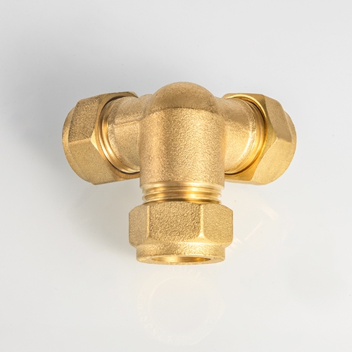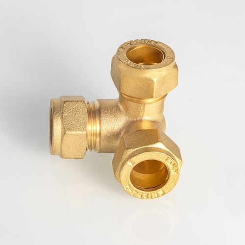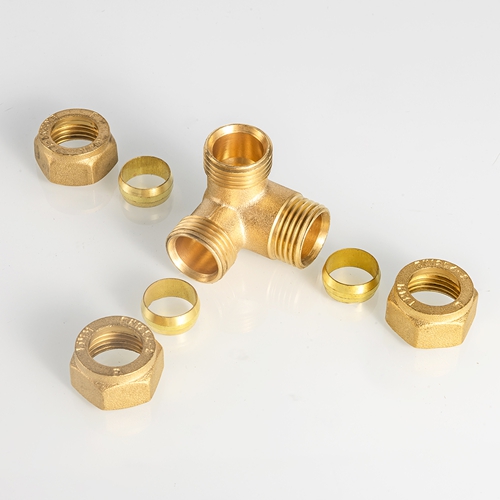 EN1254 নকল ব্রাস কম্প্রেশন নকল টি পাইপ ফিটিং কপার পাইপের জন্য পিতলের উপাদান এয়ার কম্প্রেসিও পাইপ টিউব ফিটিং ইউনিয়ন