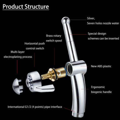 আমাদের বিডেট স্প্রেয়ারে একটি 7-হোলের সিলভার অগ্রভাগ রয়েছে যা একটি নরম, সমান এবং শক্তিশালী জল প্রবাহ সরবরাহ করে। এটি আপনার সমস্ত বাথরুমের প্রয়োজনের জন্য নিখুঁত কার্যকর টয়লেট এবং পৃষ্ঠ পরিষ্কারের জন্য শক্তিশালী চাপ বজায় রাখার পাশাপাশি ব্যক্তিগত স্বাস্থ্যবিধির জন্য মৃদু, পুঙ্খানুপুঙ্খ পরিস্কার প্রদান করে।