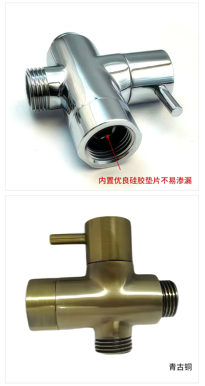 এর মূল উদ্দেশ্য হল একটি কম্প্যাক্ট ডিজাইনে বাথরুমের ঝরনা সিস্টেমের জন্য একটি মাল্টি-ফাংশনাল, লিক-প্রুফ এবং সহজে ইনস্টল করা ইন্টিগ্রেটেড সলিউশন, ওয়াটার ডাইভারশন, প্রবাহ নিয়ন্ত্রণ এবং হ্যান্ডহেল্ড শাওয়ার ব্র্যাকেট ফাংশনগুলিকে একীভূত করা। পণ্যটি একটি উচ্চ-বিশুদ্ধ পিতলের কাঠামো গ্রহণ করে: জলপথ, থ্রেড জয়েন্ট, ভালভ কোর এবং লোড-ভারিং অংশ যা সরাসরি জল এবং প্রাচীরের সাথে যোগাযোগ করে দীর্ঘমেয়াদী জারা প্রতিরোধ, মরিচা প্রতিরোধ, শূন্য জল ফুটো এবং স্থিতিশীল অপারেশন নিশ্চিত করতে প্রিমিয়াম ব্রাস থেকে তৈরি করা হয়। পণ্যের পৃষ্ঠটি ক্রোম প্লেটিং এবং পলিশিং প্রক্রিয়া দ্বারা চিকিত্সা করা হয়, একটি উজ্জ্বল আয়নার মতো ক্রোম চেহারা, অ্যান্টি-ফাউলিং, আঙ্গুলের ছাপ-প্রতিরোধী এবং পরিষ্কার করা সহজ।