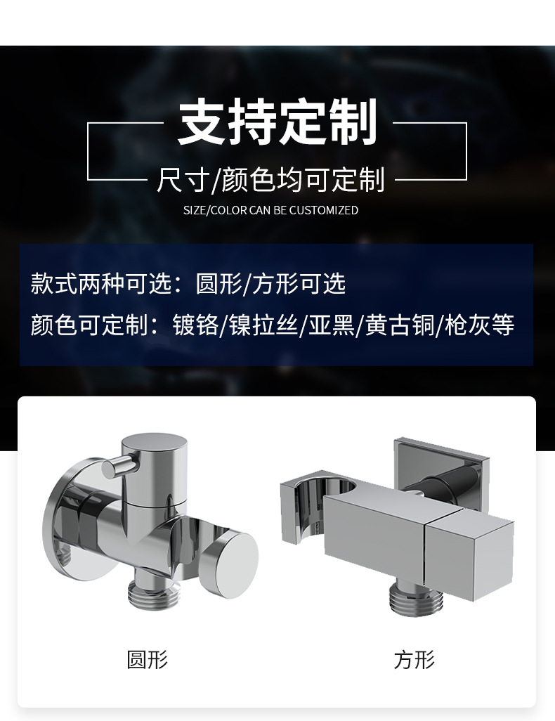 এর মূল উদ্দেশ্য হল বাথরুমের হ্যান্ড শাওয়ার/বিডেট স্প্রেয়ার ইনস্টলেশন, ওয়াটার আউটলেট সংযোগ, কনুই অ্যাডাপ্টার, এবং একটি কমপ্যাক্ট ডিজাইনে বন্ধনী সমর্থনের জন্য একটি মাল্টি-ফাংশনাল, লিক-প্রুফ, এবং স্থান-সংরক্ষণের সমাধান প্রদান করা। পণ্যটি একটি প্রিমিয়াম শক্ত পিতলের কাঠামো গ্রহণ করে: জলপথ, থ্রেড জয়েন্টগুলি এবং লোড বহনকারী অংশগুলি যা সরাসরি জল এবং প্রাচীরের সাথে যোগাযোগ করে তা উচ্চ-বিশুদ্ধ পিতল থেকে তৈরি করা হয় যাতে আজীবন ক্ষয় প্রতিরোধ, মরিচা প্রতিরোধ এবং শূন্য জলের ফুটো নিশ্চিত করা যায়। পৃষ্ঠটি কঠোর পলিশিং এবং ক্রোম প্লেটিং প্রক্রিয়ার মধ্য দিয়ে যায়, একটি আয়না-উজ্জ্বল, মসৃণ ফিনিস উপস্থাপন করে যা জলের দাগ, আঙুলের ছাপ প্রতিরোধী এবং শুধুমাত্র একটি মুছার মাধ্যমে পরিষ্কার করা সহজ।
