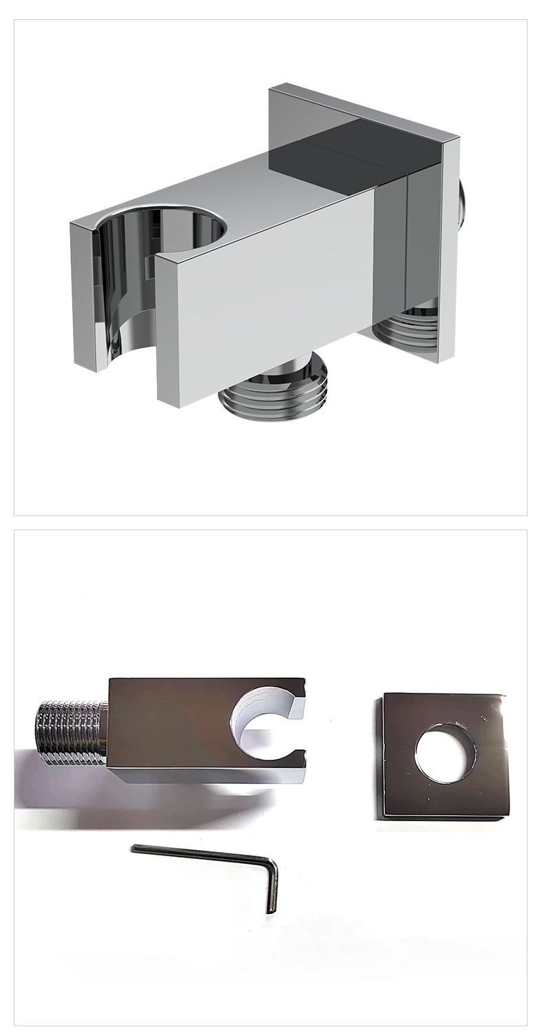 আধুনিক এবং আড়ম্বরপূর্ণ ডিজাইন:ক্রোম ফিনিশ সহ মসৃণ বর্গাকার আকৃতি, শুধুমাত্র একটি কার্যকরী ঝরনা ধারক হিসেবেই কাজ করে না বরং বাথরুমের স্থানের সামগ্রিক নান্দনিক আবেদনও বাড়ায়।